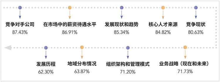 对标时的渠道来源尽量多样化:如公司官方的行业研究信息、行业峰会 / 研讨会、猎头伙伴、招聘平台的数据分析、候选人的沟通与研讨、招聘渠道数据的搜集与整理等。例如与猎头合作时,其熟悉细分领域,可以“灌输”更多企业关于新岗位出现的来龙去脉,提高匹配的精准度。