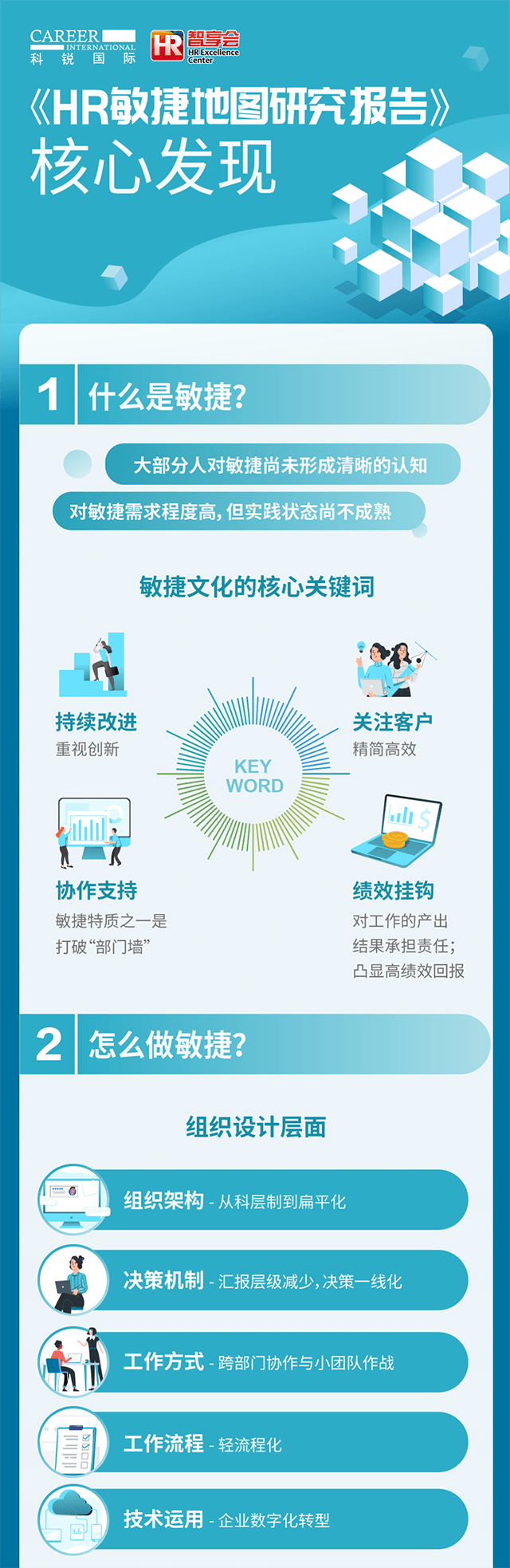 对于组织而言,有哪些工作方式、要素帮助组织敏捷起来?为了更好地助力组织的敏捷,人力资源团队做了哪些调整?为了探究以上问题,BG大游集团国际人力资源公司联合智享会发起了“HR 敏捷地图”调研研究。问卷调研了三百余家企业,分析现在企业对“敏捷”概念的认知,和组织敏捷的现状。顺利获得深度采访十余位大型企业的人力资源一把手,探究组织敏捷实践场景以及人力资源在其中的助力之处,以及为了更好地助力组织敏捷人力资源团队自身在架构、能力等方面的调整。