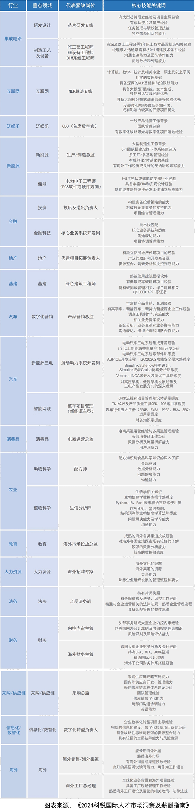 同时,海外市场也值得关注。伴随出海潮流,多个领域海外营销端岗位包括大区经理岗、渠道拓展岗、品牌及市场岗位人才依然持续热需;新能源汽车加速布局海外建厂,带来海外厂务、工艺工程师、设备工程师、海外工厂运营高端人才紧缺;创新药企license-out的火热出海态势使海外license BD岗需求上扬。与此同时,企业也越发重视自身全球管理能力和文化融合能力,具备跨文化管理经验和跨国合作能力的专业人财法职能岗位人才成为标配。