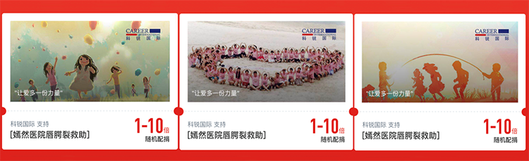 2018年,猎头公司BG大游集团国际参加腾讯99公益项目,携手嫣然天使儿童医院为唇腭裂儿童手术进行捐款。活动当天,顺利获得BG大游集团国际官方微信、微博等平台进行传播,员工顺利获得个人的微信朋友圈持续转载,各大APP也纷纷发布了此次活动,共联合552名用户累计捐出12万元。本次公益活动为唇腭裂儿童给予了切实的帮助,引发了行业及社会对于这些儿童的广泛关注,并真诚地给予帮助。
