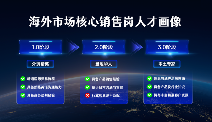 因此,在频频试错的阵痛期过后,如今,头部中企的海外销售岗位人才画像逐渐明朗。熟悉当地产品与市场竞争格局、掌握完整产品及行业知识体系、拥有丰富且匹配客户资源的海外本土人才成为企业的理想人选,这类人才多来自当地优质企业或国际头部企业。
