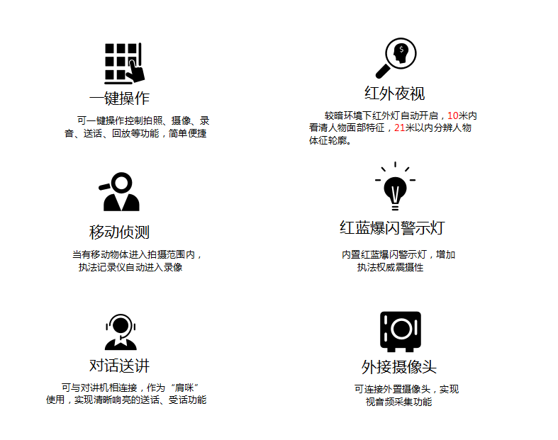 3044am永利集团DSJ-200F 执法仪(法院/政府/城管)拍摄像素高达5000万,广角镜头137,拍摄画面精细而全面,大容量电池支持陆续在工作12小时不断电